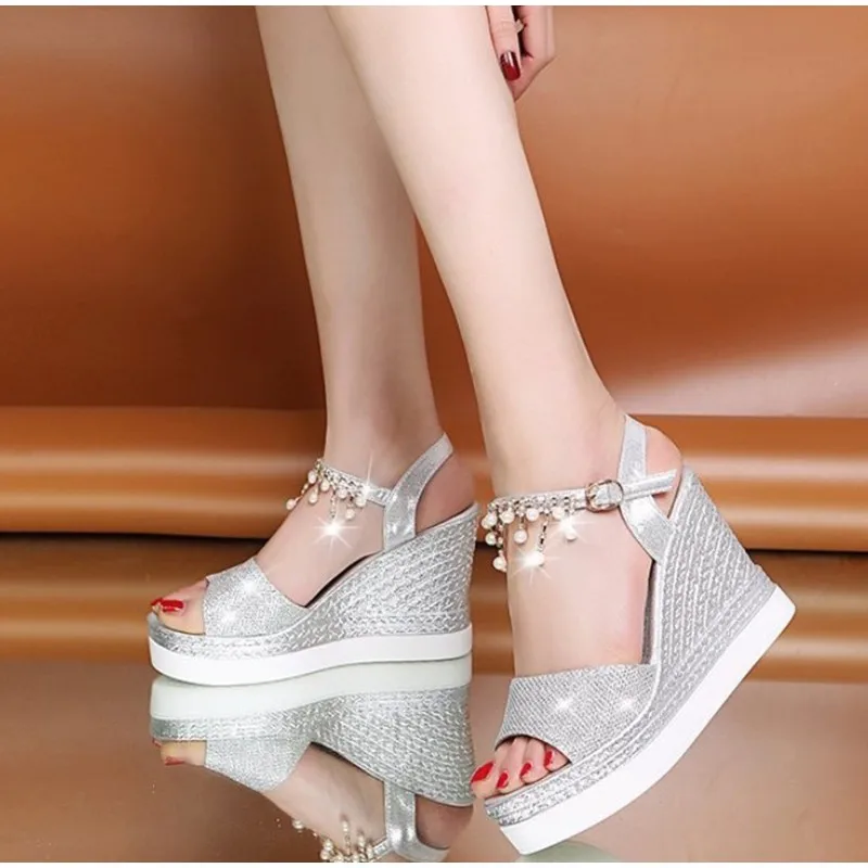 Женские шлепанцы на платформе 2021, летние плетеные тапочки, Женска...