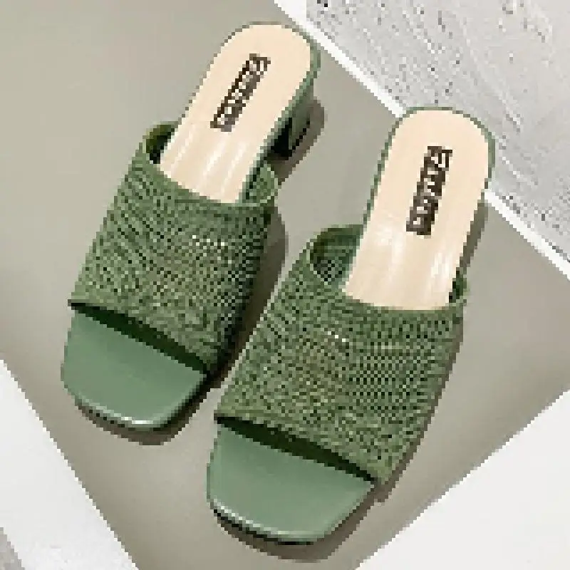 Женские сетчатые шлепанцы, прозрачные сандалии на высоком каблуке, ...