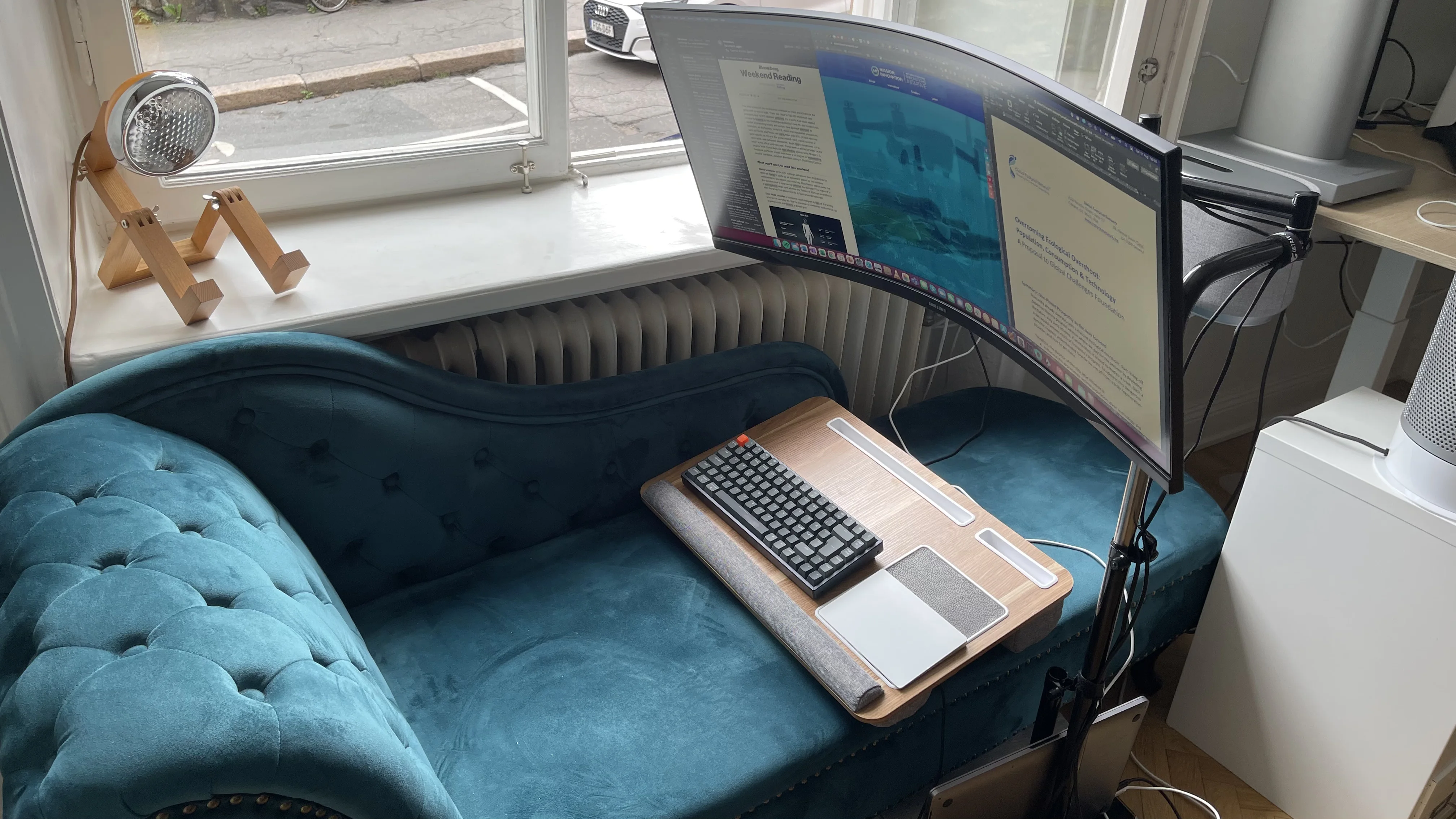 Идеально подходит для моих нужд. Мне бы понравился матовый, предпочтительно металлический, нижняя часть подставки, так как черное стекло-пылезащитный магнит. Но он работает гораздо лучше, чем я осмелился надеяться на этот низкий приз. Качество не на уровне Ergotron или Vivo, но они не делают этот вид подставки и стоят дороже (у меня есть их для установки на рабочем столе). У стойки нет никаких проблем с моим Samsung G5 Odyssey 34 "(это больше рекомендуемого максимального 27" размера). Я попробовал лоток для клавиатуры, но предпочитаю иметь клавиатуру на том же трее, что я использую для своего ноутбука. Хотел бы иметь меньший лоток, но работает для меня. Я думаю, что он прибыл около 2 недель раньше, с 10 недель ожидаемой доставки. Так что хорошо срок доставки.