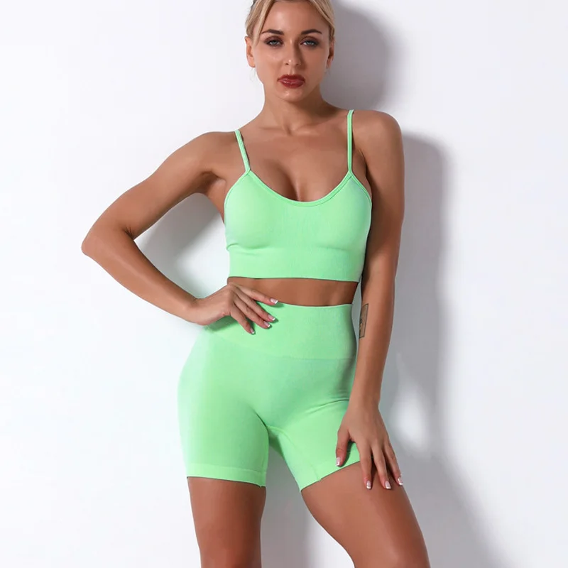Женский спортивный костюм для йоги, бесшовный бюстгальтер и шорты с высокой талией, спортивный костюм из 2 предметов, однотонная Спортивная одежда для женщин