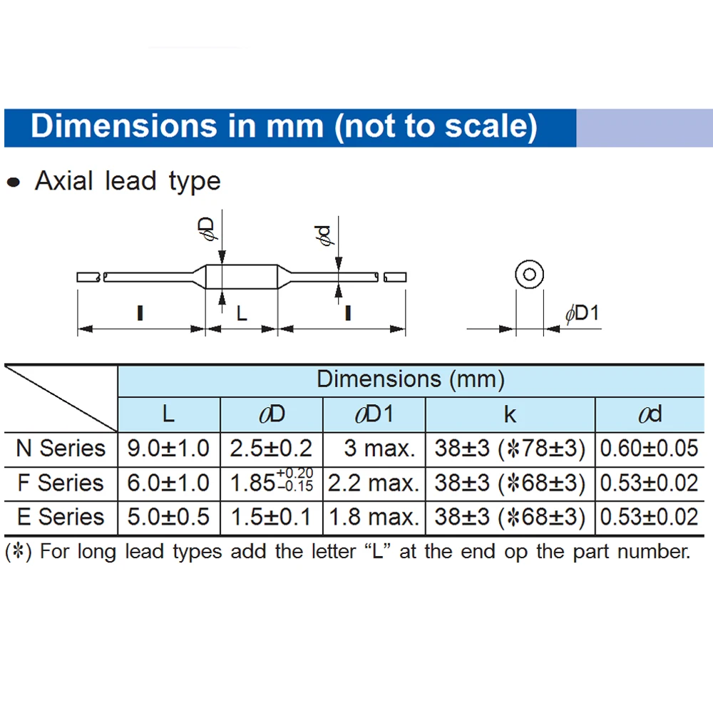 5 шт., микротемпературный предохранитель, осевое отключение, 133 гр...