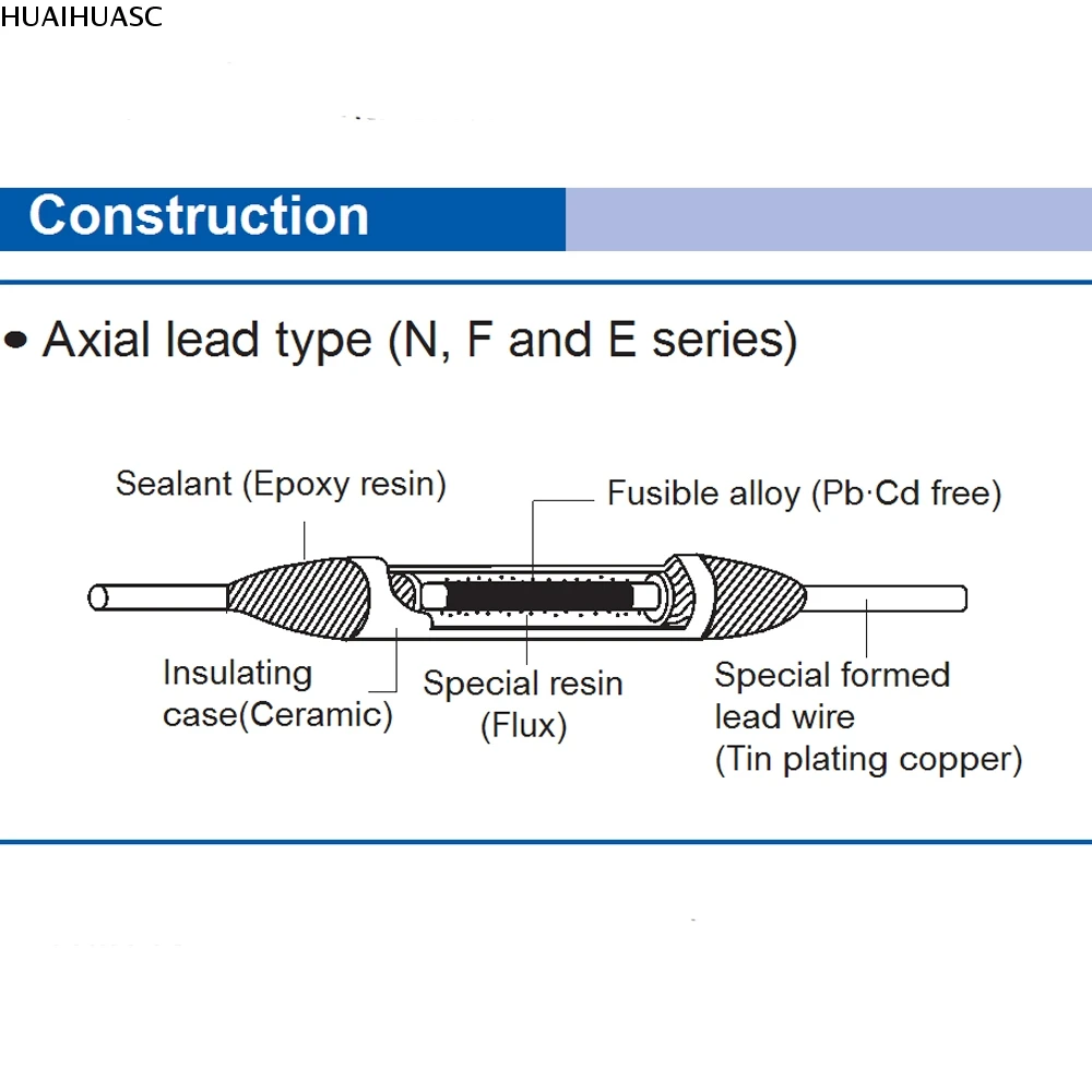 5 шт., Термопредохранитель ELCUT UMI Microtemp Axial 323 Type TF вы...