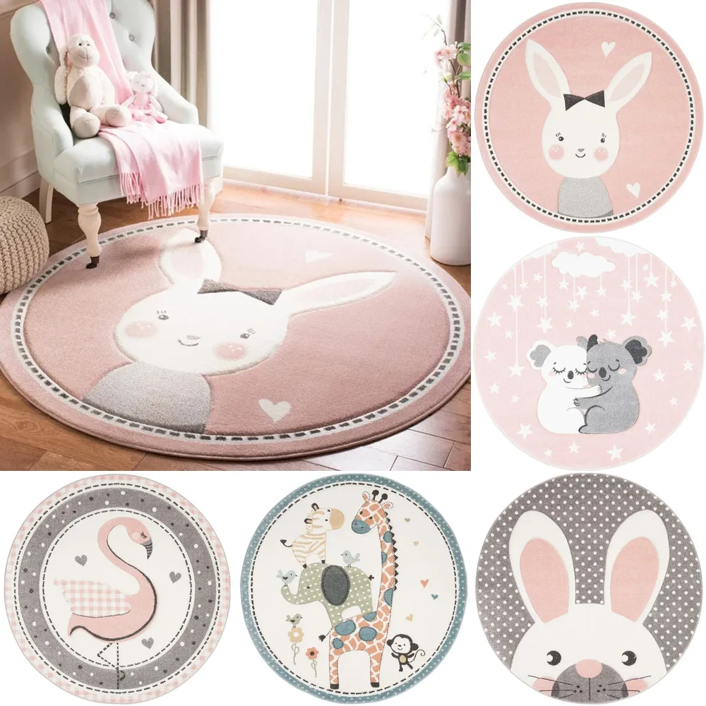 Круглый ковер с мультяшными животными, кроликами, детский коврик для ползания, коврик для гостиной, спальни, прикроватный коврик, плюшевый ковер для стула, домашний декор