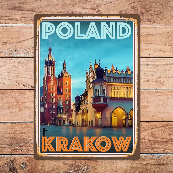 Металлическая Оловянная вывеска Краков, Польша, металлическая вывеска, Настенный декор для домашней комнаты, Ретро винтажный стиль, постер для путешествий, Барпабмужская пещера
