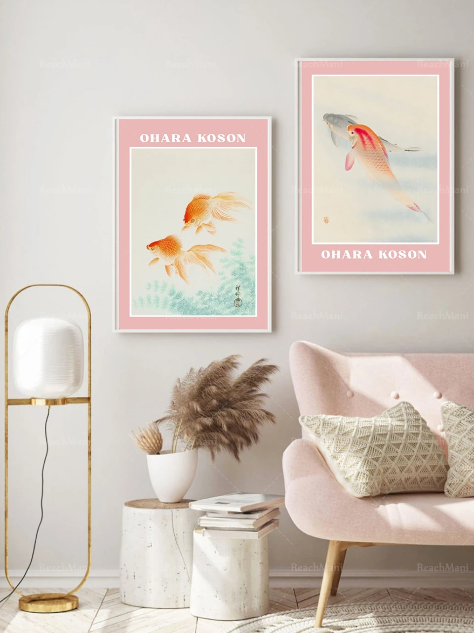 Картина ретро японская, абстрактная, 2 набора, картина Золотая рыбка