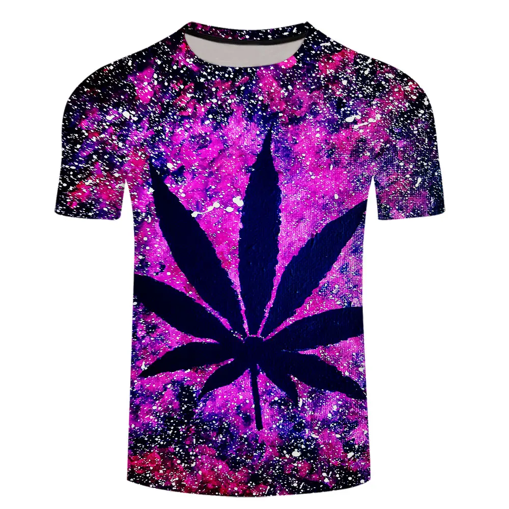 Новинка лета 2021, Мужская футболка, крутая фиолетовая футболка с 3D-принтом сорняков, психоделического галактического пространства, женская футболка, Детская Повседневная футболка в стиле хип-хоп