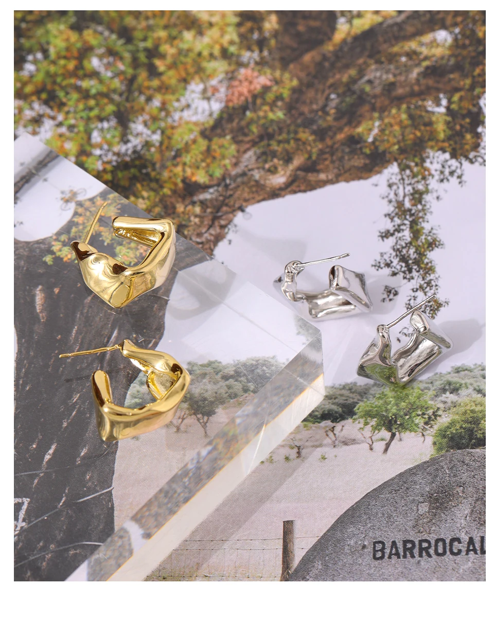 Yhpup 2021 нестандартные металлические геометрические серьги-гвоздики Минималистичная медная текстура 14 K модные серьги Aros Mujer Oreja подарок для вечеринки