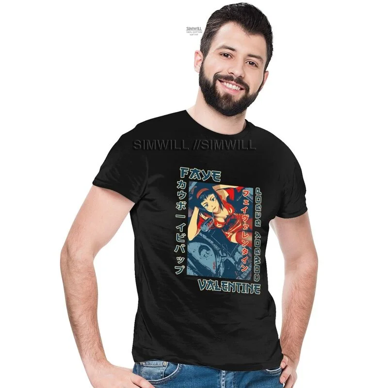 Cowboy Bebop Фей на День святого Валентина, Мужская футболка, Модная хлопковая футболка с коротким рукавом с рисунком из Аниме Манга Футболка Уникальная футболка