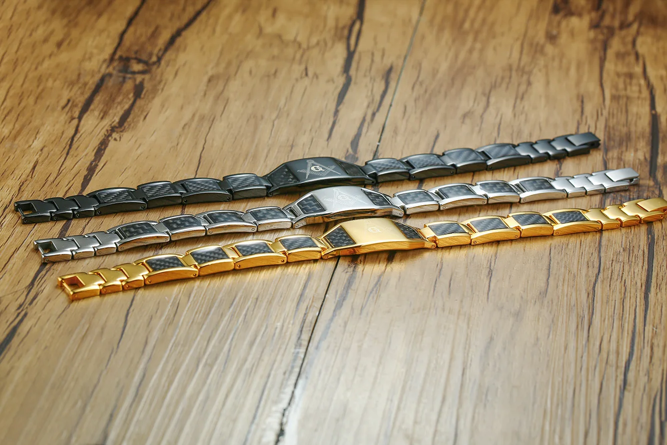 Мужской Магнитный Браслет Oktrendy, из нержавеющей стали, с голограммой, из углеродного волокна, золотого цвета, 2021