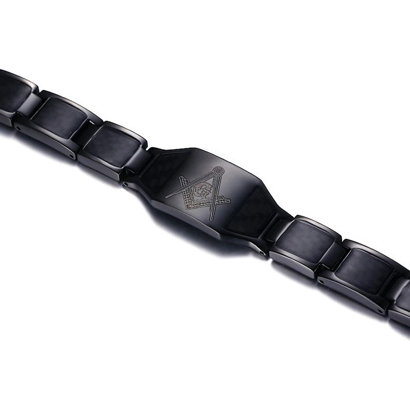 Мужской браслет, черный мужской браслет из нержавеющей стали с инкр...