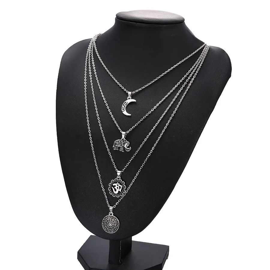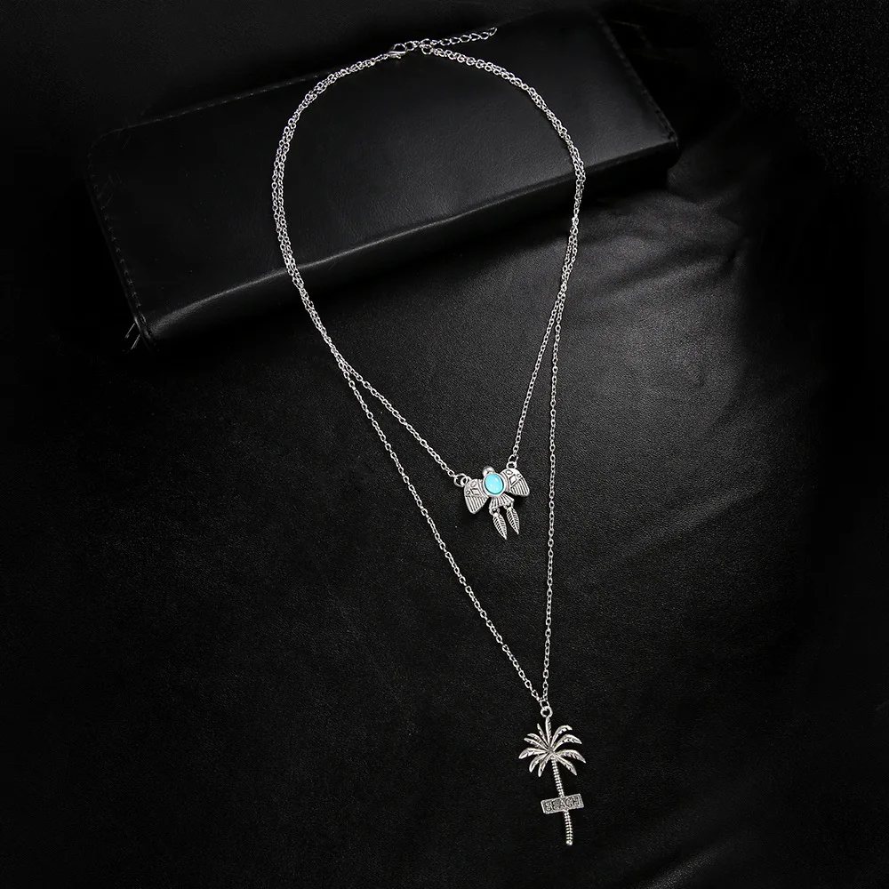 Ожерелье с 3d-подвеской в богемном стиле женское, очаровательное Ювелирное Украшение золотистого и серебристого цвета с 3D подвеской в виде пальмы, Луны, солнца, многослойное ожерелье с подвеской, 2021