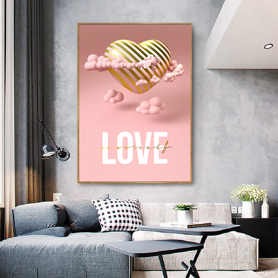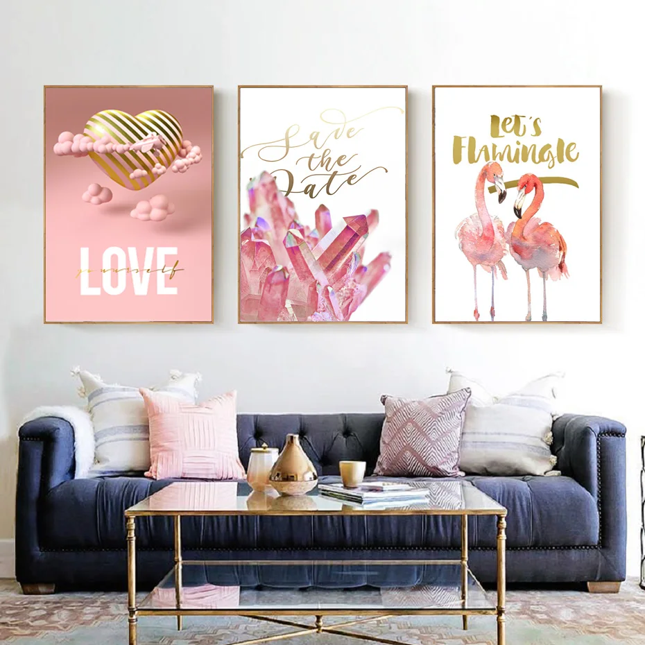 Скандинавская маленькая свежая розовая серия, Золотая Роза, цветок, любовь, пейзаж, настенное искусство, холст, живопись, Постер, подарок, гостиная, украшение для дома