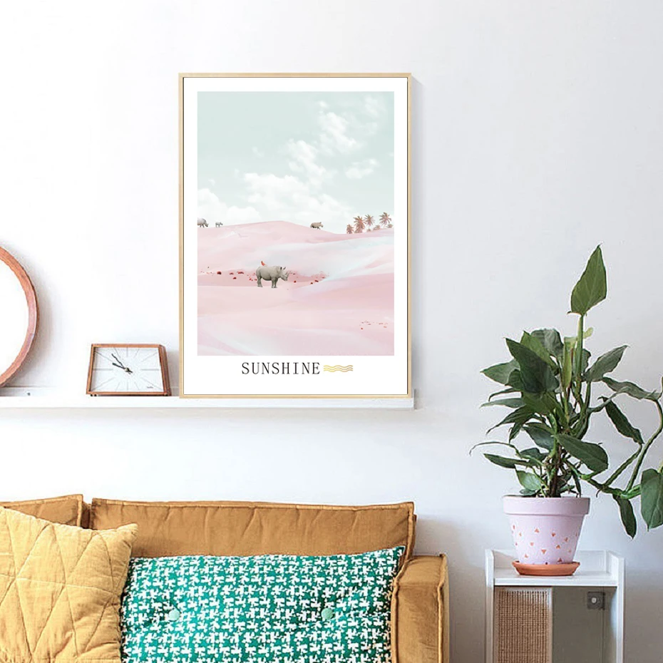 Минимализм абстрактный геометрический розовый архитектура пустыня облака пейзаж настенная Картина на холсте постер подарок гостиная дом De