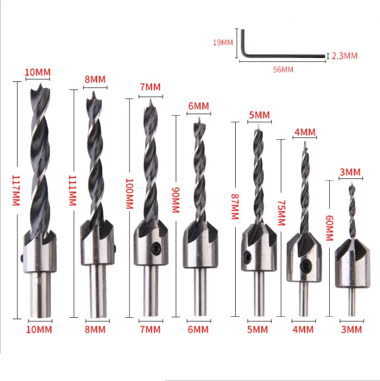 Набор сверл для столярного дела, комплект из 3-10 мм, 4-7 насадок из быстрорежущей стали с 5 канавками, для фрезерного отверстия, для деревообработки