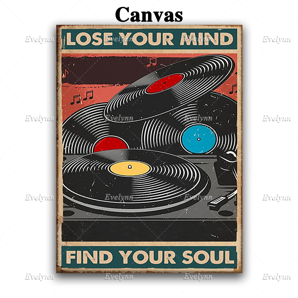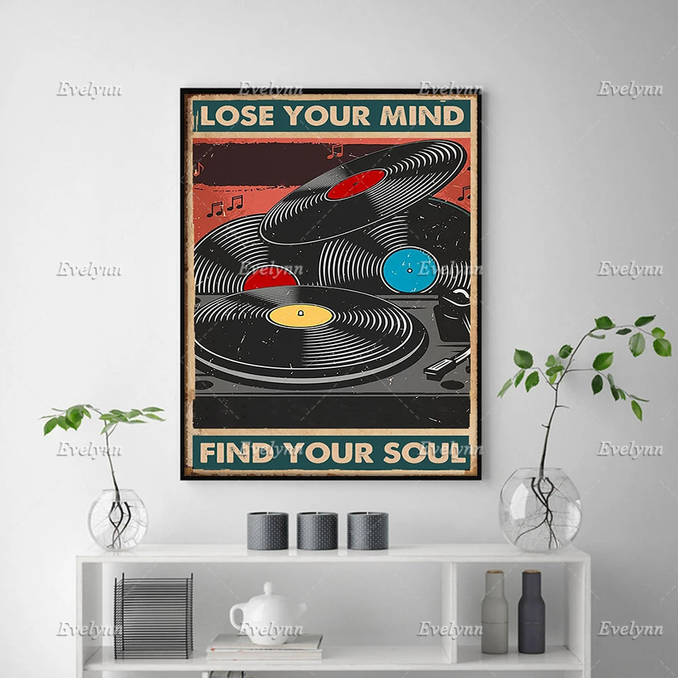 Виниловая запись, фонограф, запись, потерять свой ум, найти свою душу, ретро постер, настенные художественные принты, домашний декор, холст, плавающая рамка