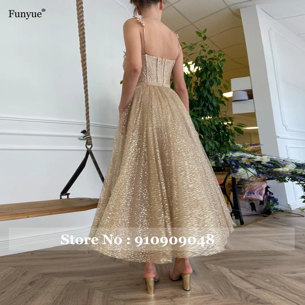 Блестящие короткие платья с золотыми блестками для выпускного вечера, новинка 2021, вечерние платья трапециевидной формы на бретелях с блестящими кристаллами и жемчугом