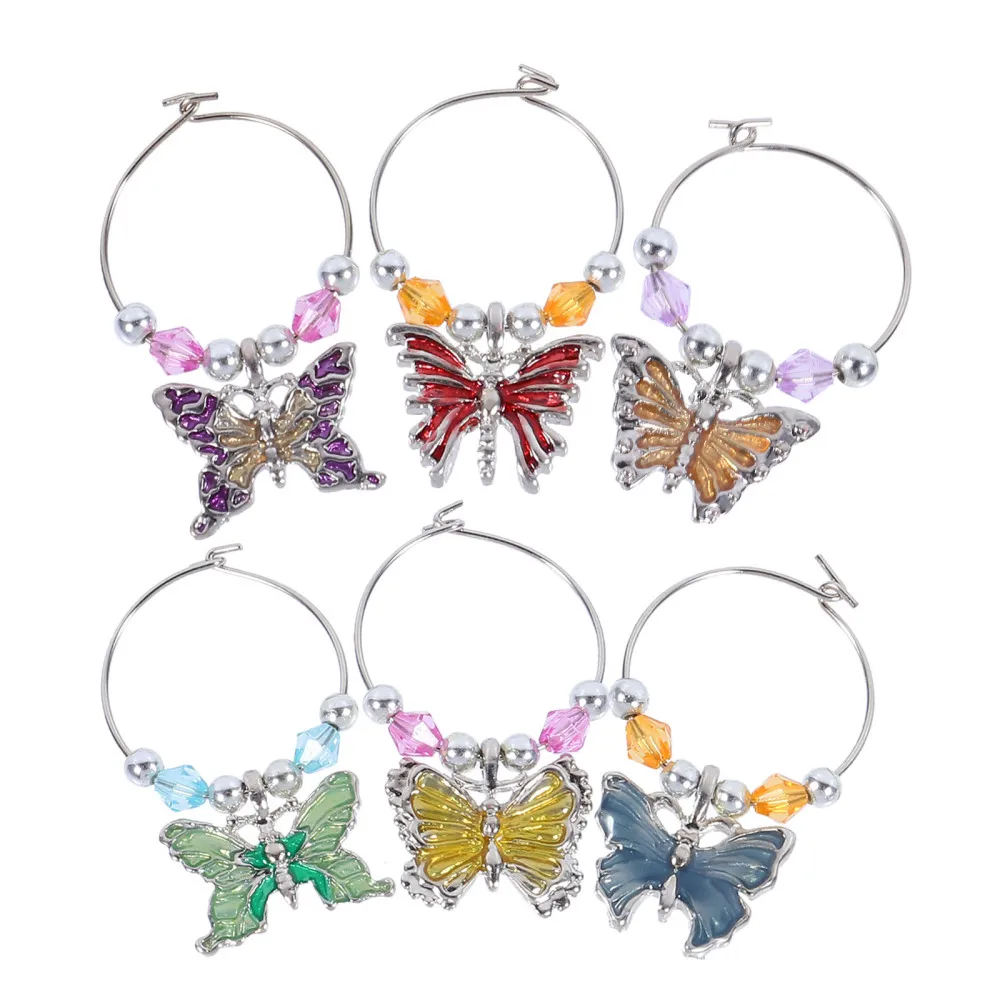 6 шт. бабочки стеклянные бирки кольца из сплава стеклянные кольца для вечеринок стеклянные маркеры