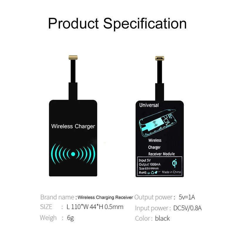 Описание:1. 100% новый.2. Идеально подходит для телефона, не нарушая внешний вид и производительность телефона.3. Низкое излучение тепла, новая улучшенная высокая эффективность Qi беспроводной модуль приемника чип.4. Типы USB на выбор: Micro USB-B277 / Micro USB -B280 (как показано на рисунке). Широкий интерфейс вниз/вверх (пожалуйста, убедитесь, что вы выбираете правильный тип интерфейса, который соответствует вашему мобильному телефону, в противном случае приемник не будет работать.)Характеристики:1. Вход: 5 В2. Выход: 1000 мА (макс.)3. Температура реакции:-10 ~ 40 градусов4. Срок службы: зарядка и разрядка более 4000 раз5. Стандарт: стандарт Qi6. Совместимость для: для Micro USB, для Type-C, для iphoneПосылка включает в себя:1 беспроводной зарядный приемник