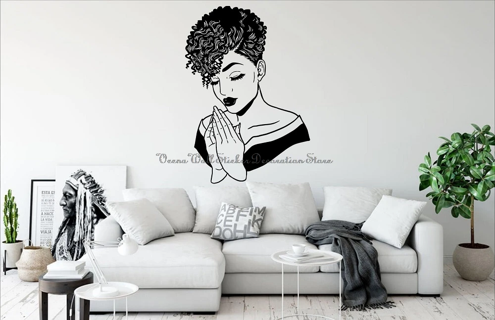 Африканские женские молитвенные наклейки на стену, модные женские домашние наклейки для гостиной, спальни, декоративные виниловые наклейки для дверей S25