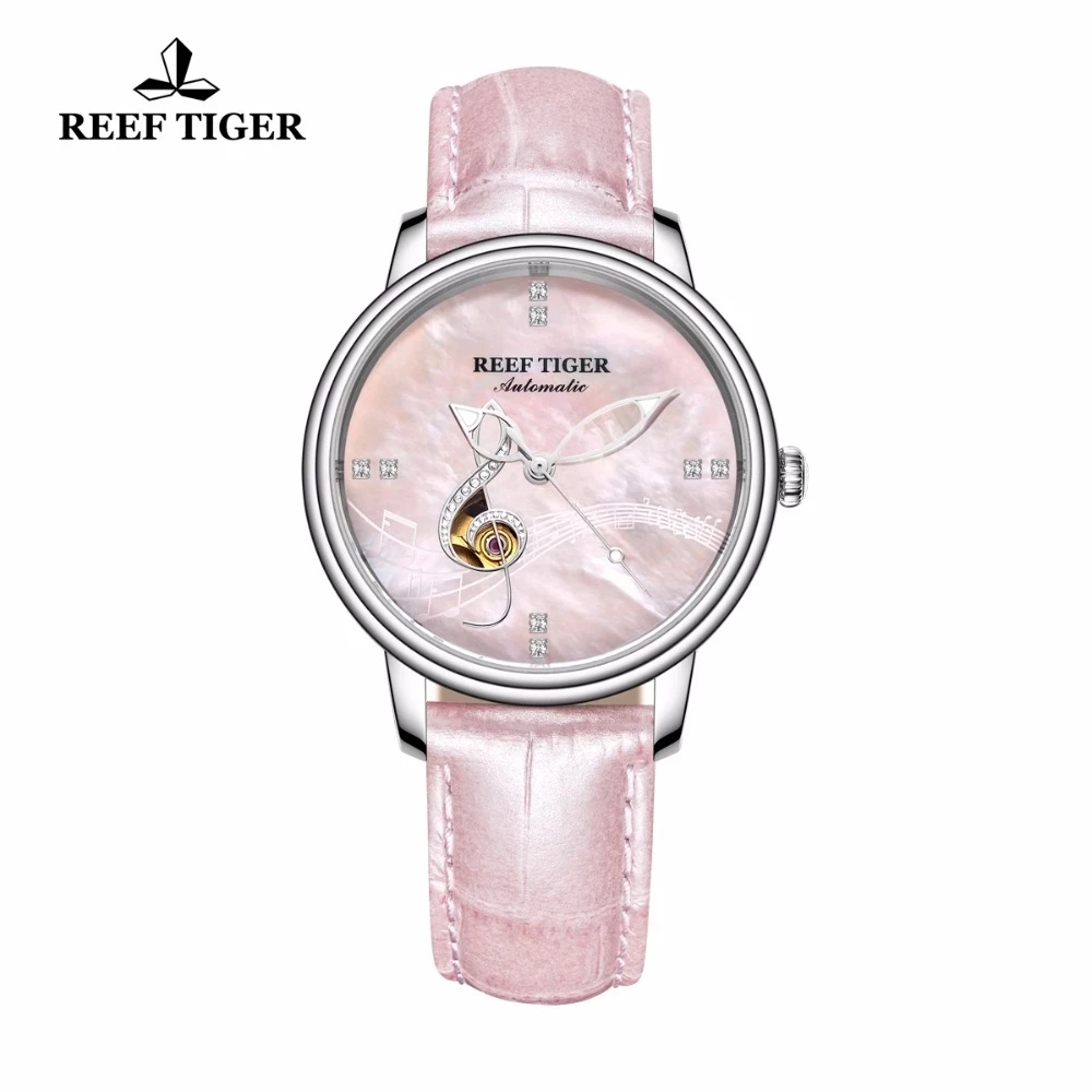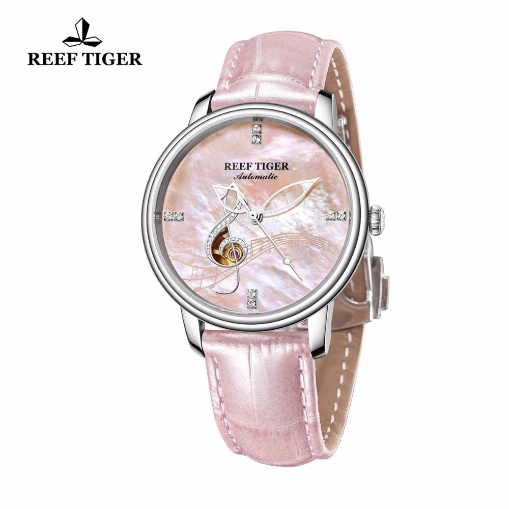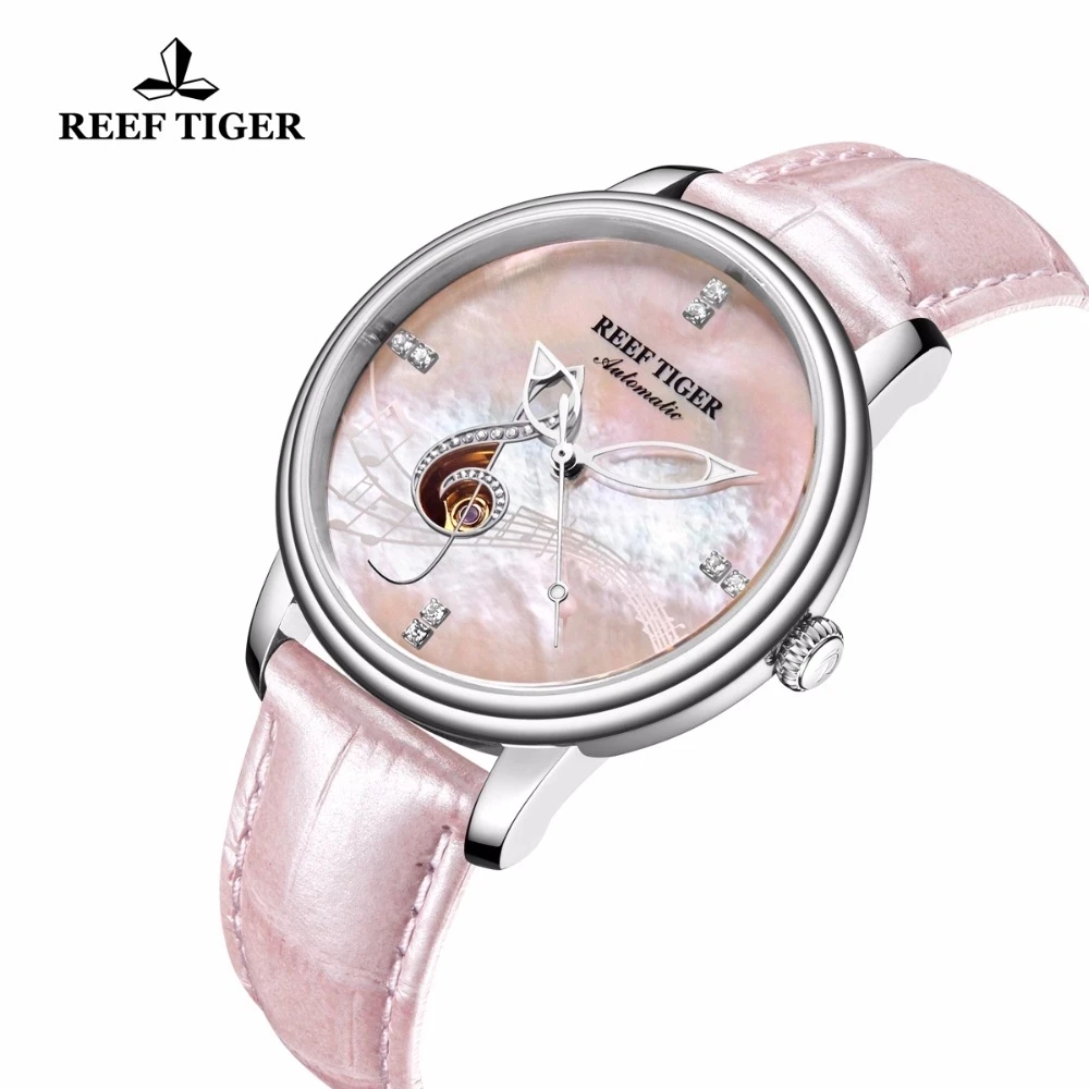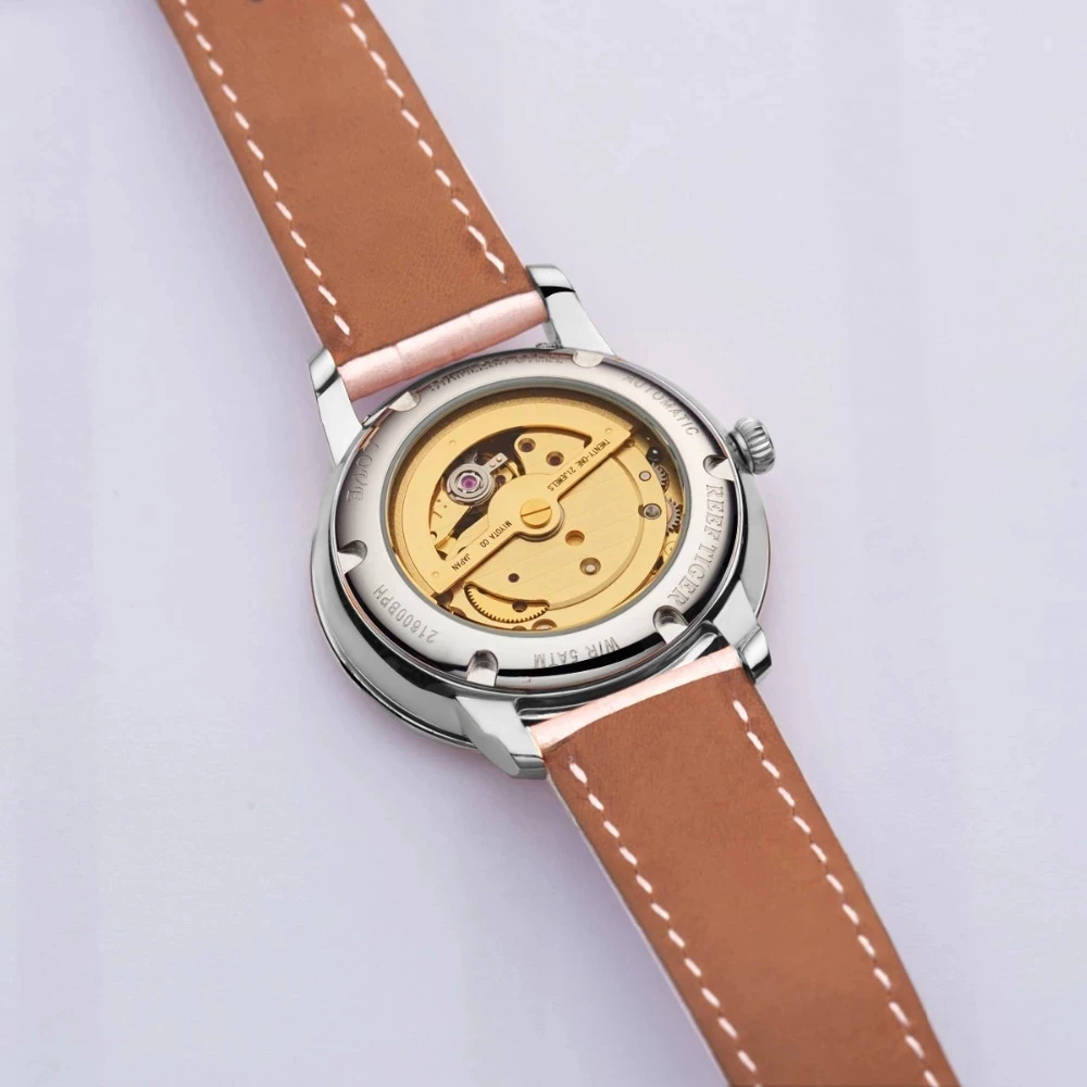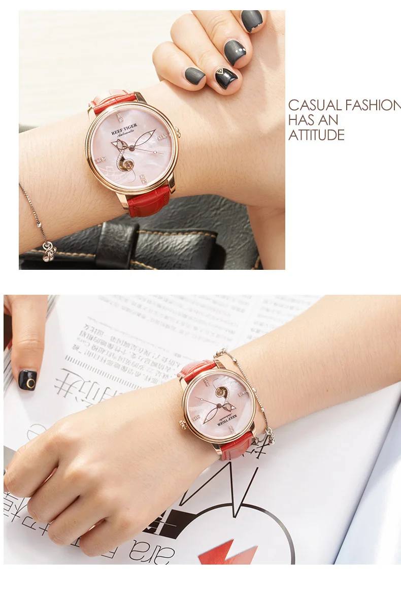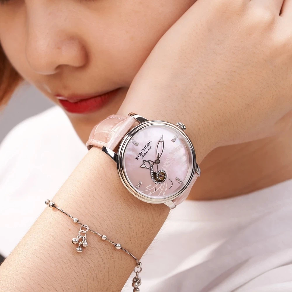 Часы женские механические с автоподзаводом из натуральной кожи и сапфировым стеклом