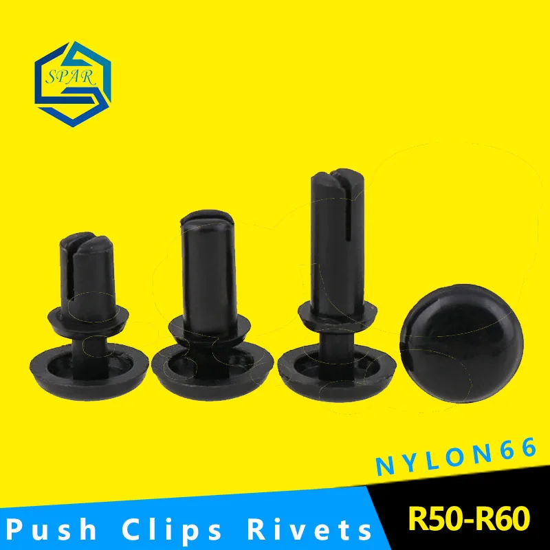 Оптовая продажа черно-белых нейлоновых зажимов R50 R60 с внутренним диаметром, заклепки, крепежные заклепки, пластиковые заклепки, R-образная печатная плата