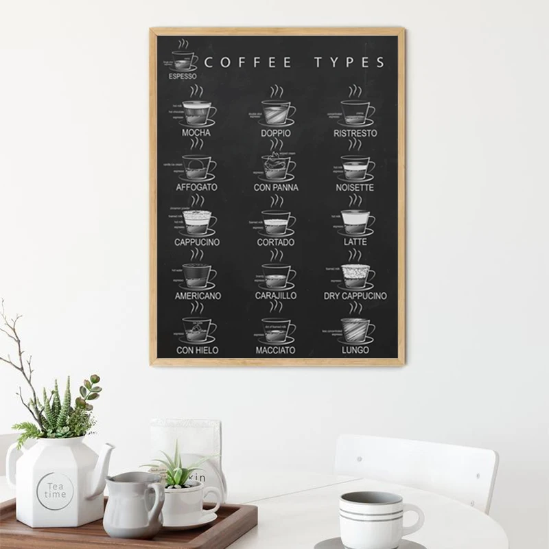 Плакат для заметок мелом в винтажном стиле с изображением кофейных типов меню, настенное искусство в кафе холст, картина черно-белая, декор для кухни