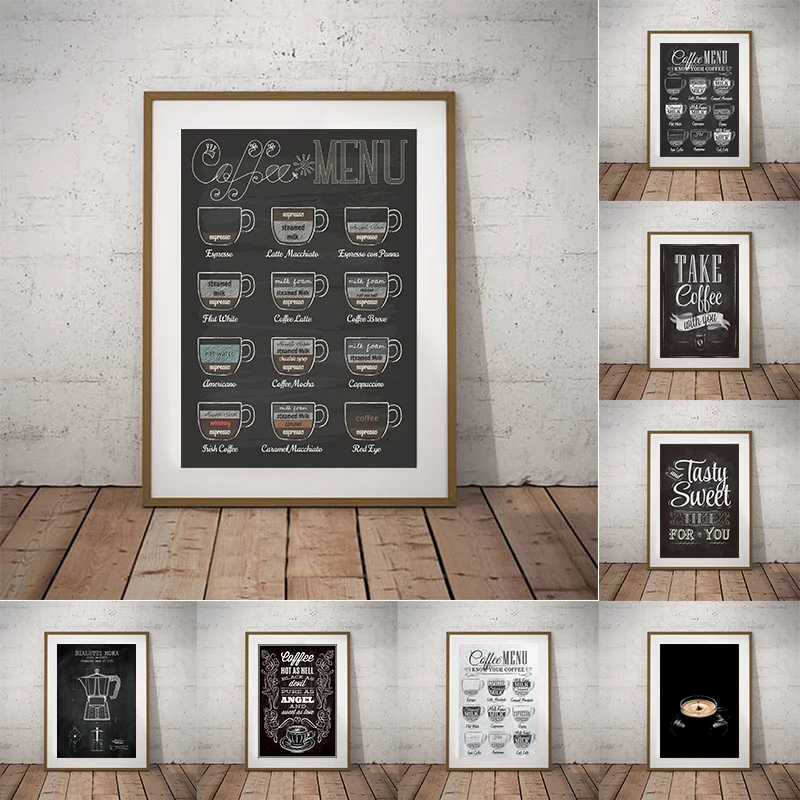 Кофейные виды меню кафе магазин настенные фотографии ручной работы кофе информация и Смешанное меню холст художественные принты современный кухонный Декор