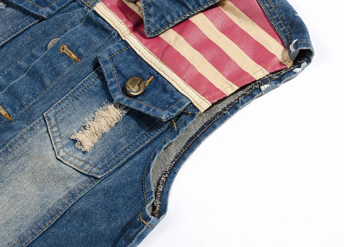 Мужская рваная джинсовая жилетка без рукавов с американским флагом