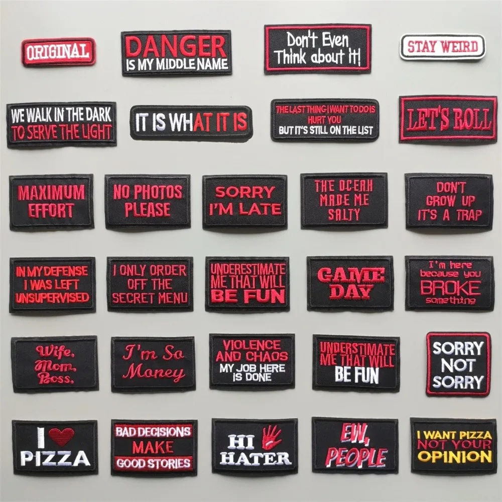 (27 стилей) красные буквы нашивки для одежды DIY полоски железные на одежде наклейки для одежды вышивка слова значки для рюкзака