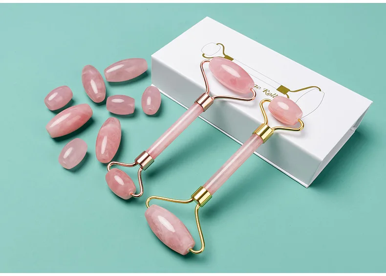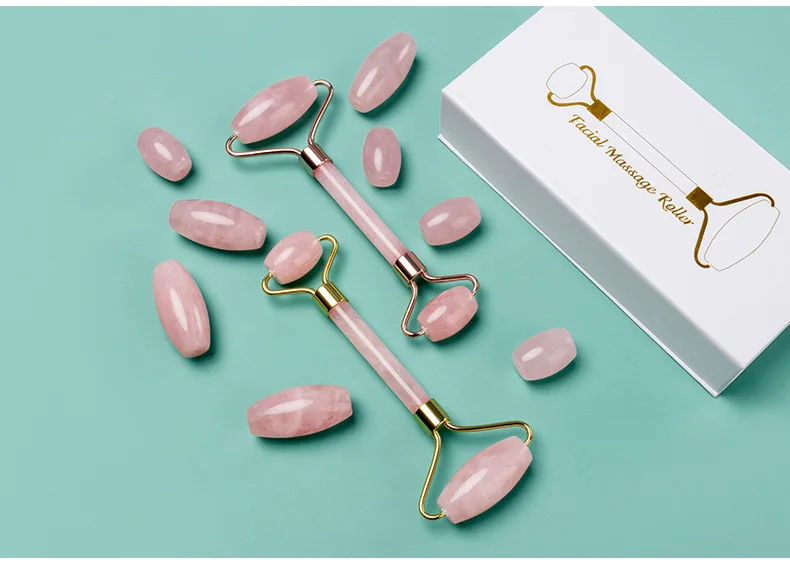 Оригинальный нефритовый ролик, натуральный розовый кварц, массажер для лица, ролик для кожи, глаз и шеи, роликовый массажер для лица