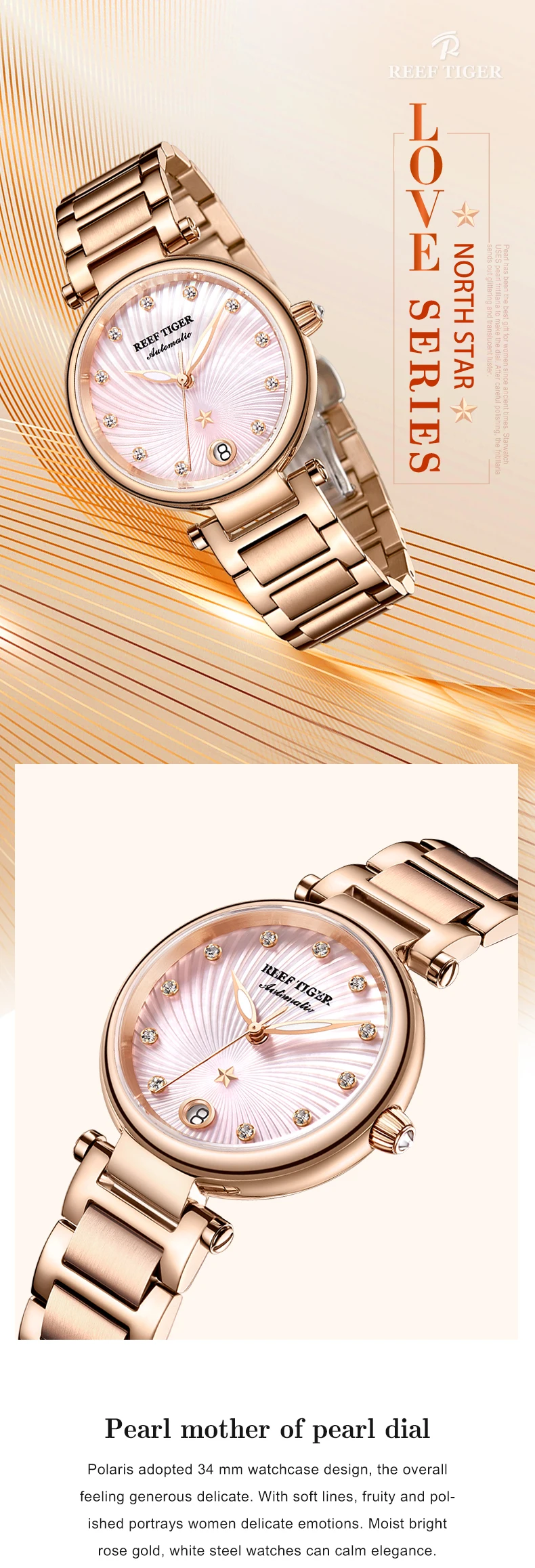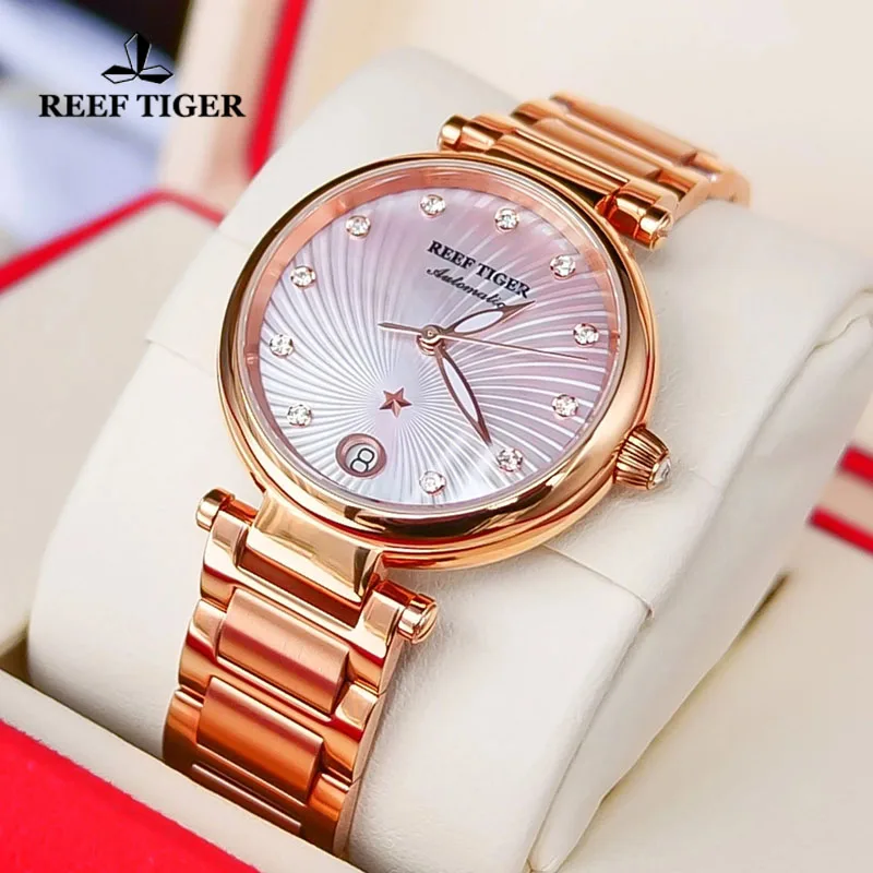 Женские часы с автоподзаводом Reef TigerRT, часы из розового золота...