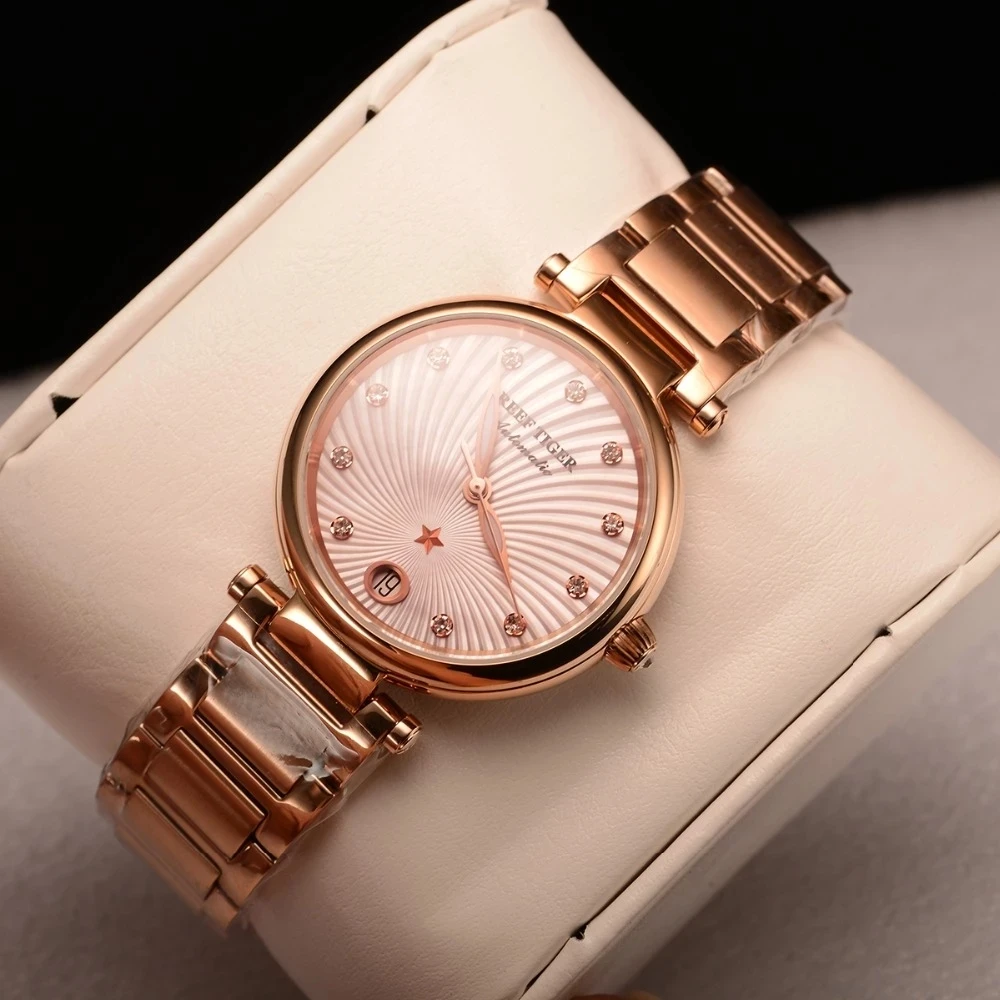 Риф ТигрRT 2021 Топ Роскошные Брендовые женские часы из розового золота чехол часы циферблат с бриллиантами браслет часы Дата Подарок