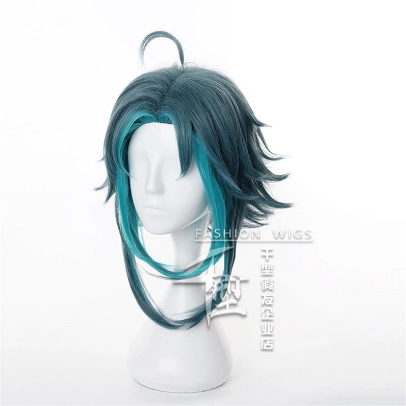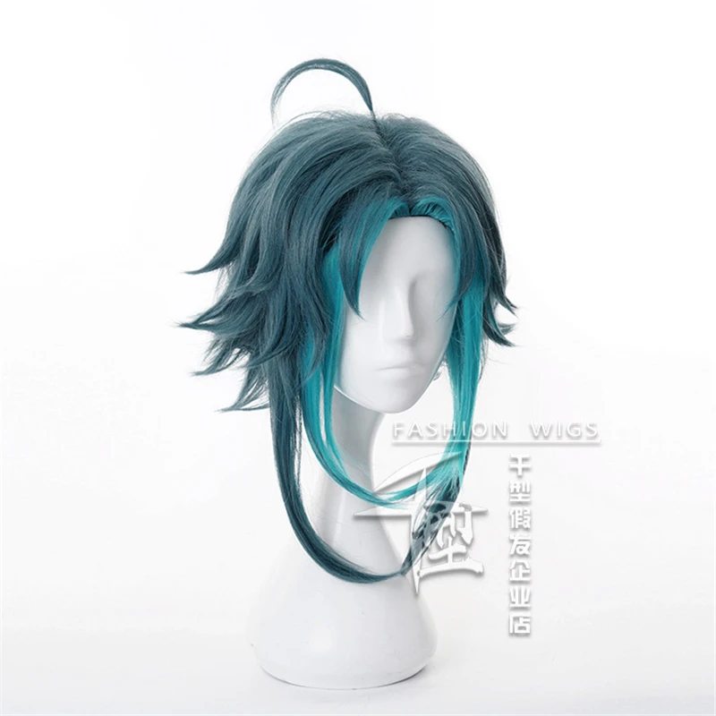 Парик для косплея Genshin Impact Сяо, термостойкие искусственные волосы с синей смешанной оплеткой, с шапочкой