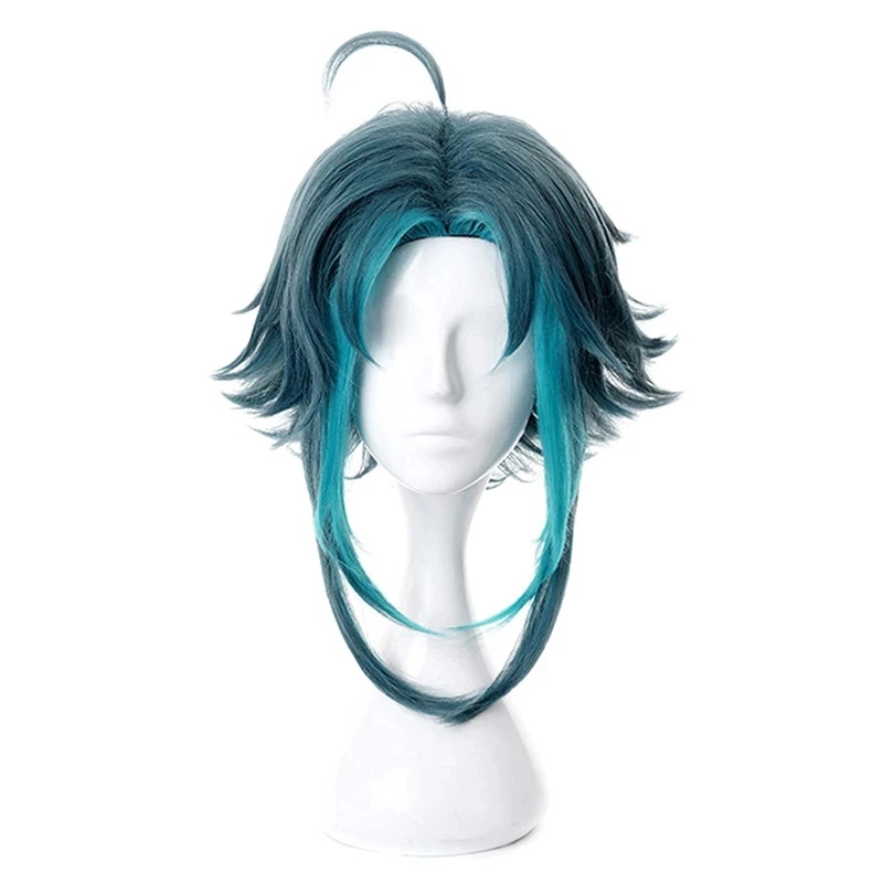 Парик для косплея Xingqiu Genshin Impact Xing Qiu темно-синие корот...