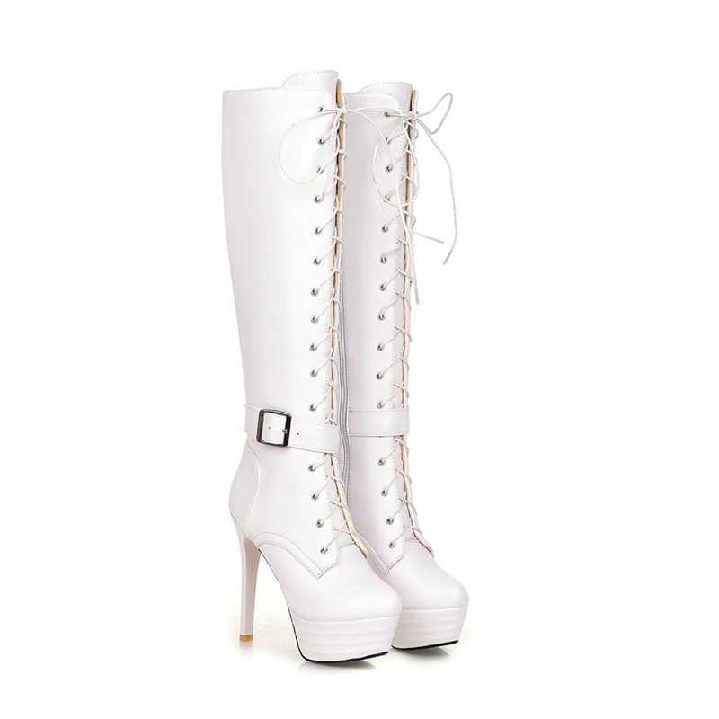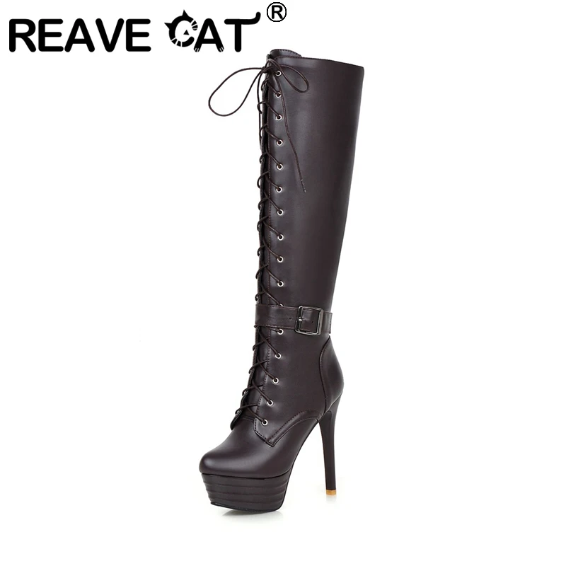 Женские сапоги до колена REAVE CAT, зимние белые сапоги до колена на платформе 13 см, с застежкой-молнией и круглым носком, US14, A4207