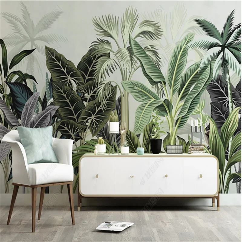 Ручная роспись леса тропические растения обои для гостиной спальни обои ТВ фон обои домашний декор Дисплей продукта: