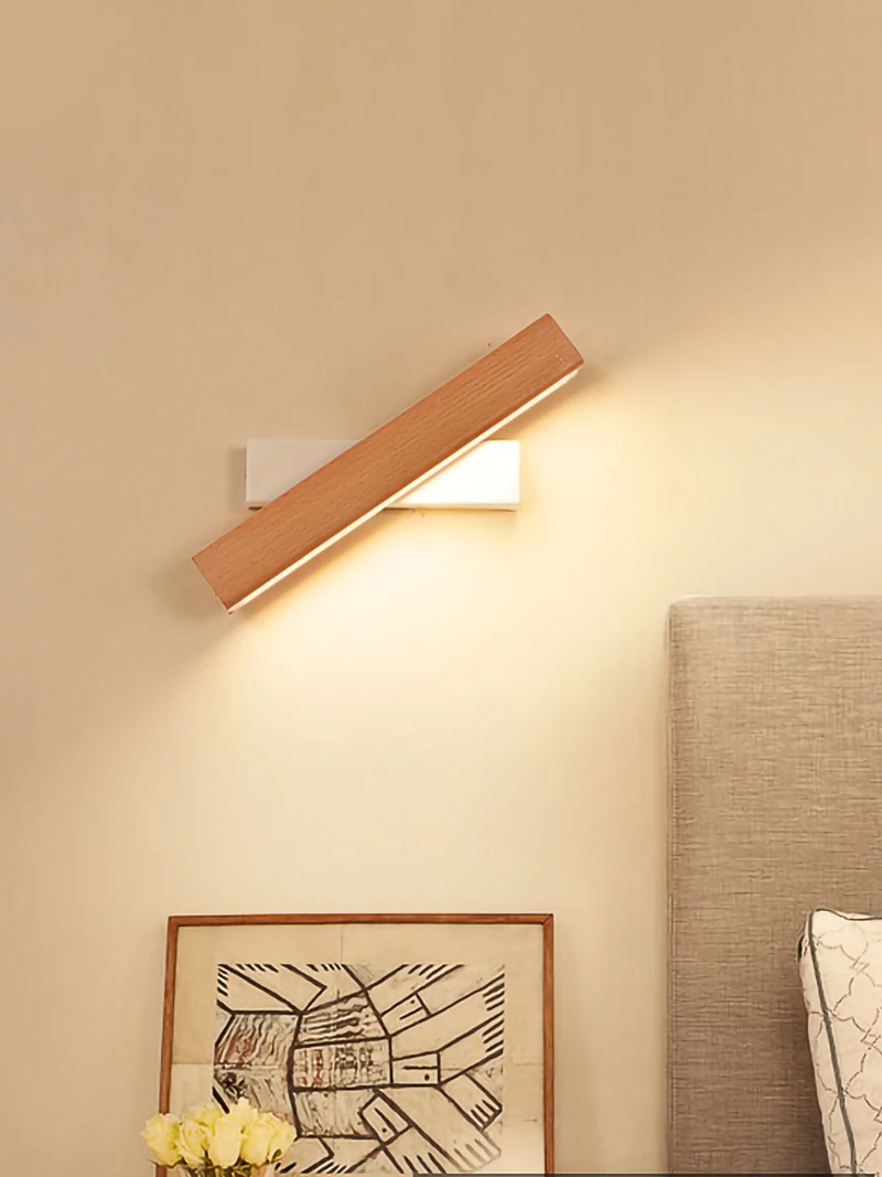 Северная Европа LED настенная лампа из цельной древесины спальня пр...