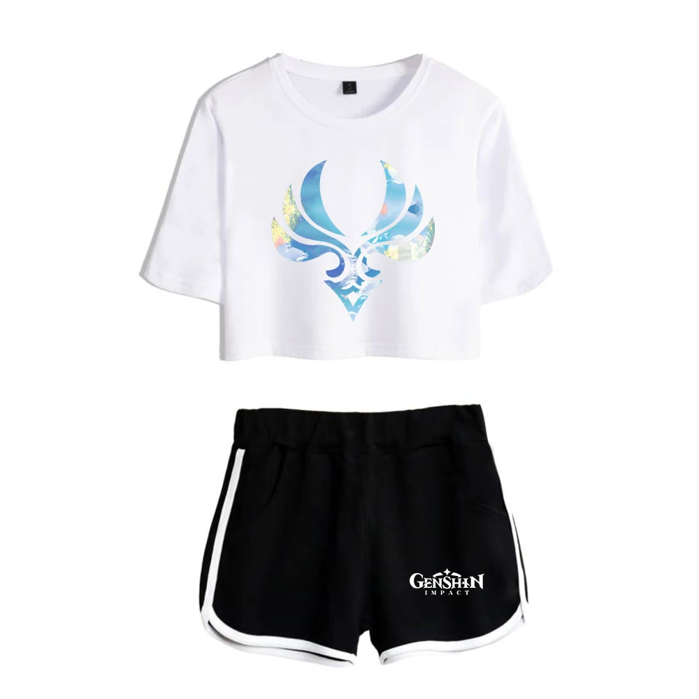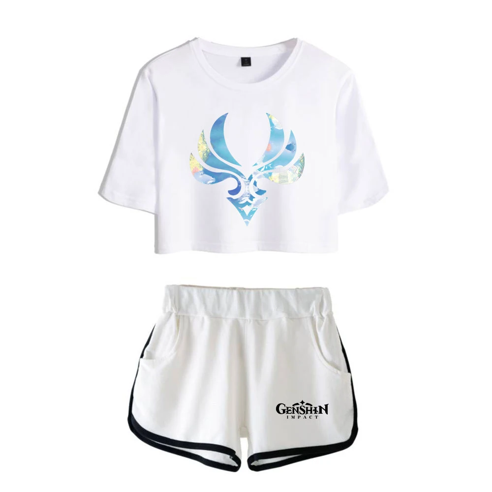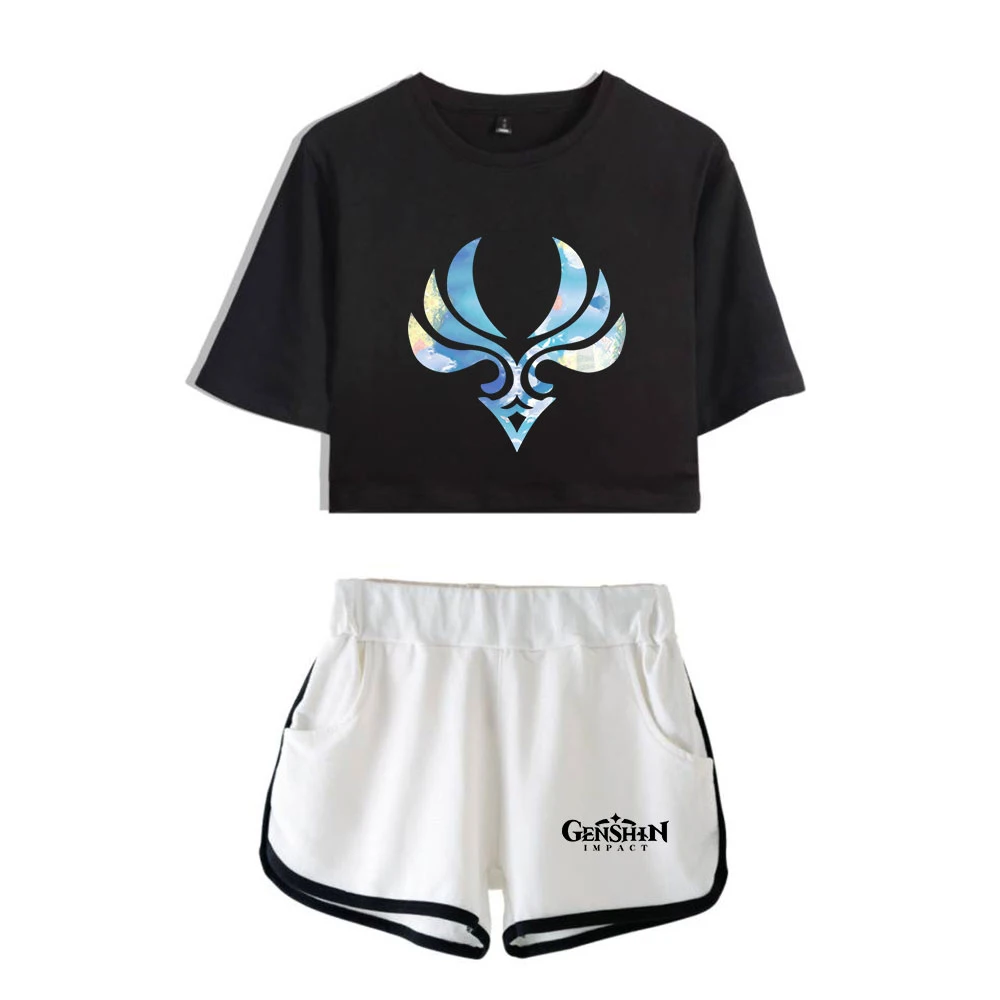 Костюм для косплея keqing venti zhongli, укороченная футболка и шорты, лето