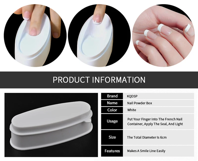 Спецификация:Материал: ПВХЦвет: белый, как на изображенииРазмер: прибл. 10,7X4X3,1 смПосылка включает в себя: 1 лоток для порошкаОсобенности:1. Высококачественный материал, нетоксичный, экологичный и Безопасный в использовании.2. С помощью направляющей формы вы просто наденете на нее пальцы, а затем улыбаетесь.3. Легко восстанавливает два типа линий улыбки. Круглая сторона для широкой линии улыбки, Овальная сторона для глубокой линии улыбки.4. Нескользящая основа достаточно устойчива для вас, чтобы легко сделать французский гвоздь и блестящий порошок для ногтей.5. Отличный инструмент для ногтей для создания красивых французских ногтей.6. Идеальный подарок для салонов маникюрных художников, новичков и тех, кто любит Diy Дизайн ногтей и ногтей.Как использовать:1. Налейте акриловый порошок и наденьте белый для французского маникюра, Надавив белый на кончики.2. Аккуратно встряхните контейнер от бокового до бокового порошка.3. Поднимите палец вверх и снимите лишний порошок.Примечание:1. Из-за ручного измерения возможна погрешность в размере около 1-3 см.2. Цвет товара, отображаемый на фотографиях, может немного отличаться на мониторе вашего компьютера, так как мониторы не откалиброваны так же.
