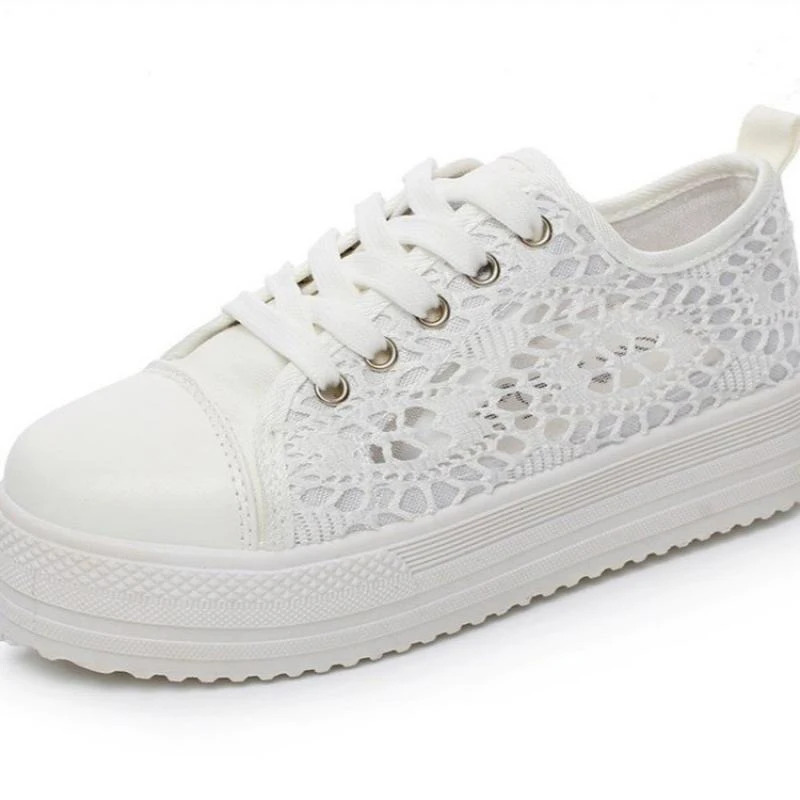 Женская обувь, Летняя Повседневная Белая обувь, кружевные парусинов...