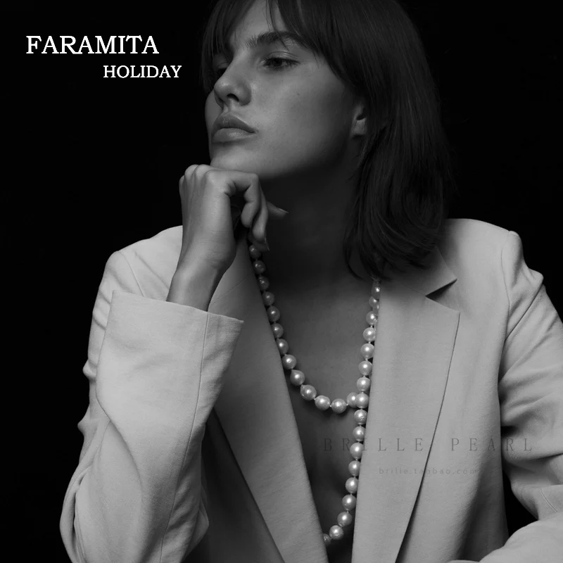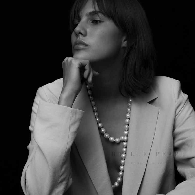 Длинная цепочка с натуральным пресноводным жемчугом в стиле барокко