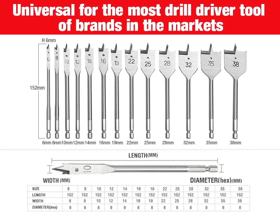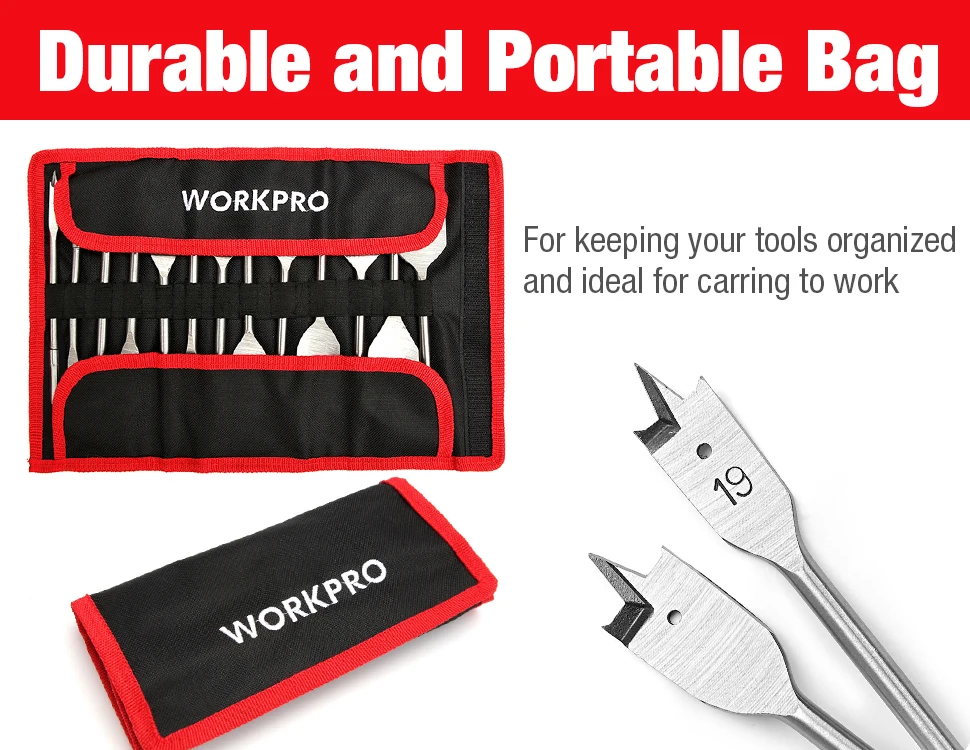 Набор сверл WORKPRO для деревообработки, 13 шт., в комплекте нейлоновый мешочек для хранения