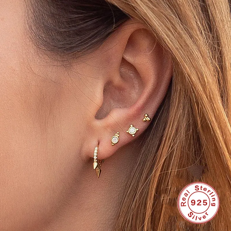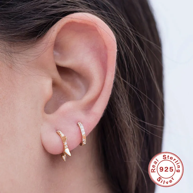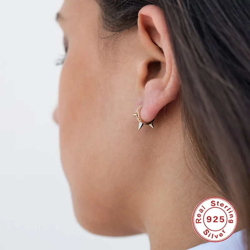 Реальные 925 пробы серебряные серьги в виде колец, для Для женщин минималистский Cz шипы Huggie серьги в виде колец, Крошечные золотые кольца плата 925 2021 тенденция