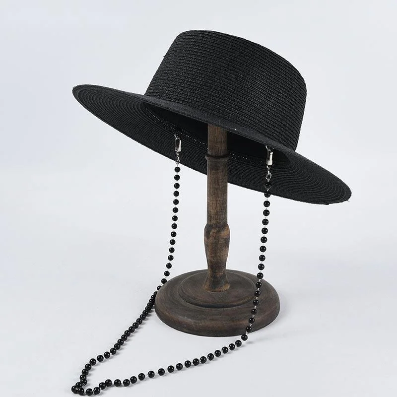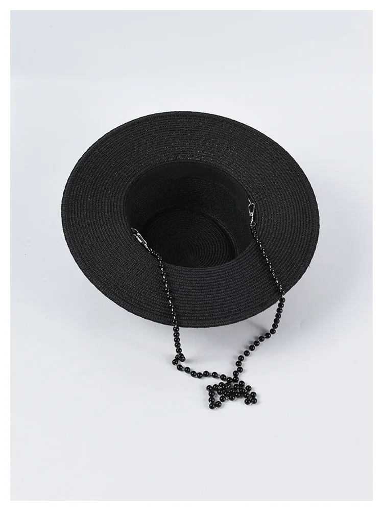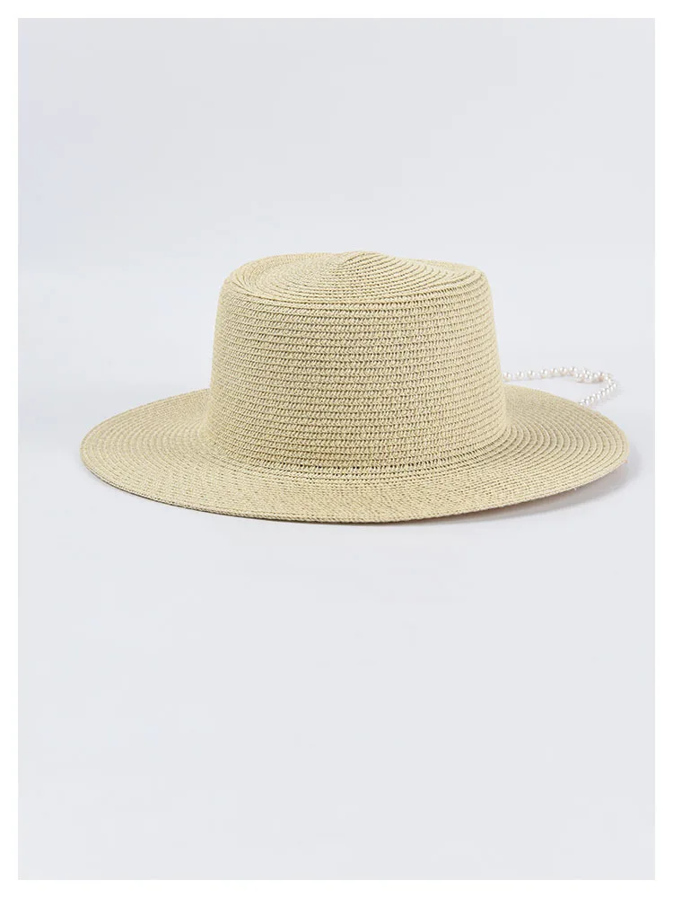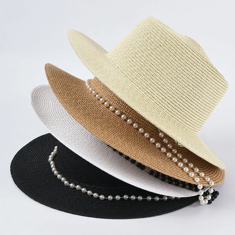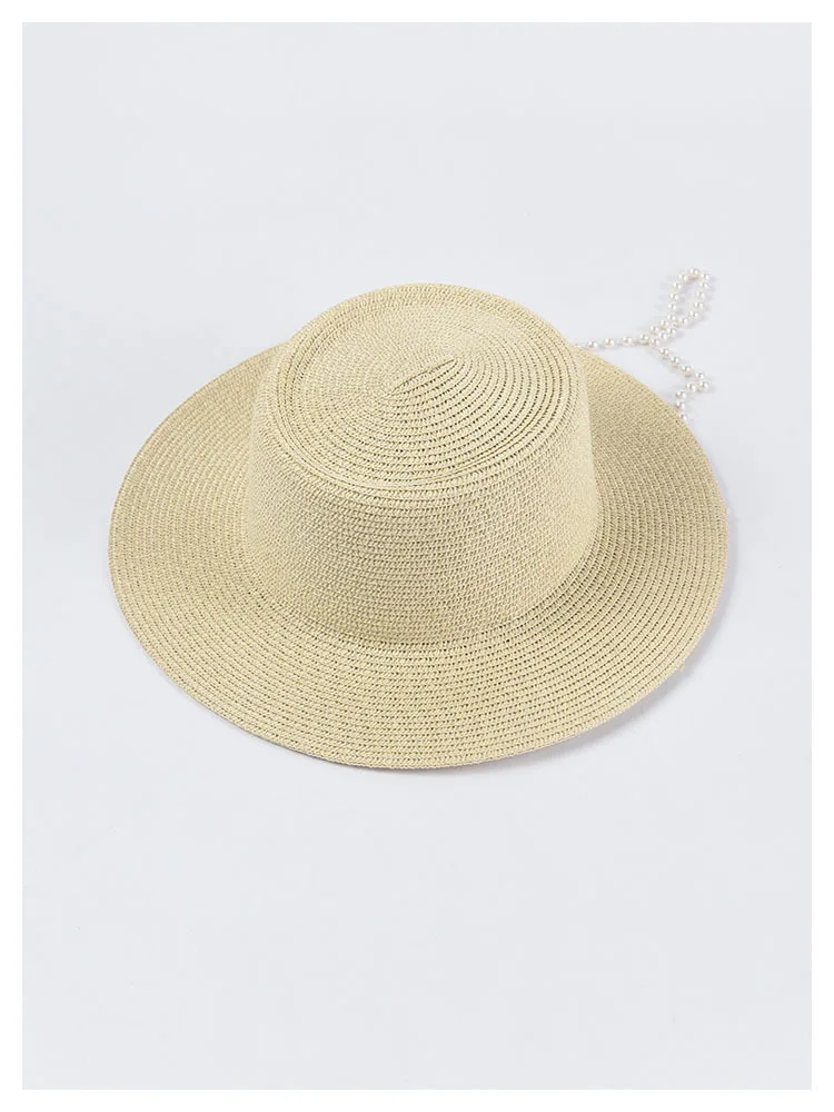 Соломенная шляпа с жемчужной подвеской в европейском и американском стиле, женская летняя пляжная шляпа