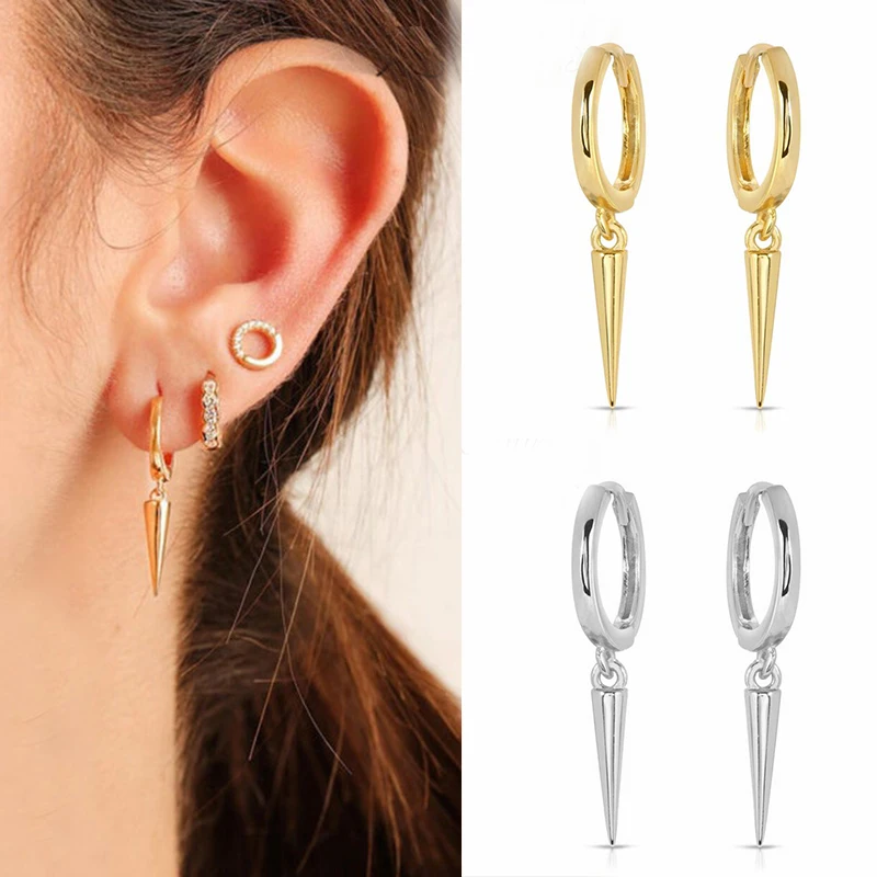 Минималистский 925 пробы серебро шипованные серьги в виде колец, для Для женщин серьги со стержнем в виде анха, мелкие золотые маленькие золотые серьги в виде колец, 2021