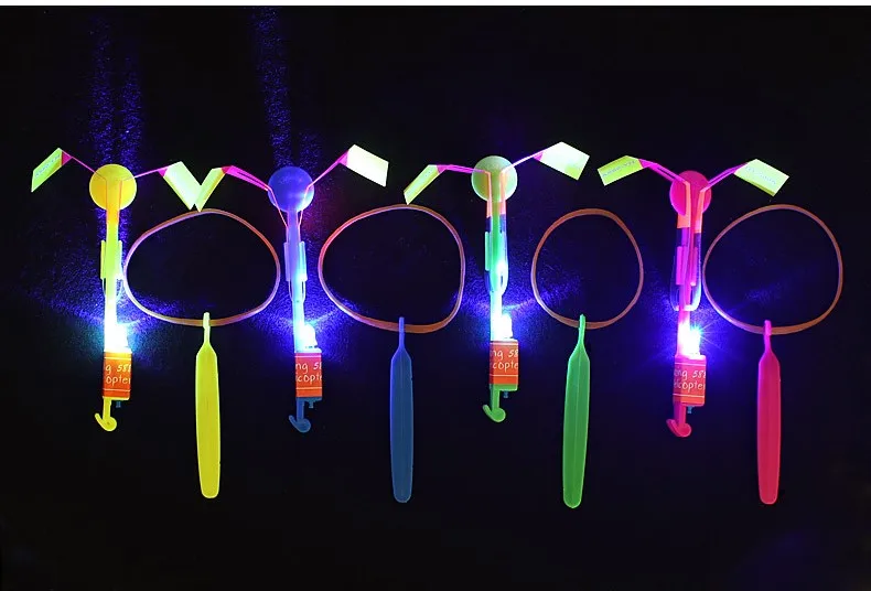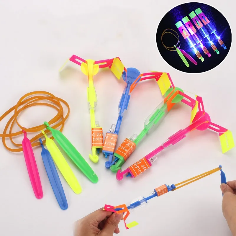 Бамбуковая Стрекоза светильник светом стрельба эжекция Резиновая лента Летающая стрела Летающий парашют уличные ночные игры игрушки для детей