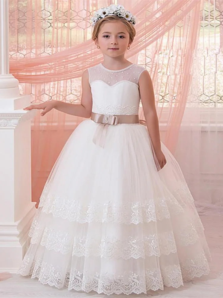 Белые Платья с цветочным узором для девочек на свадьбу; Кружевное Пышное Платье для девочек; Детские платья принцессы для первого причастия