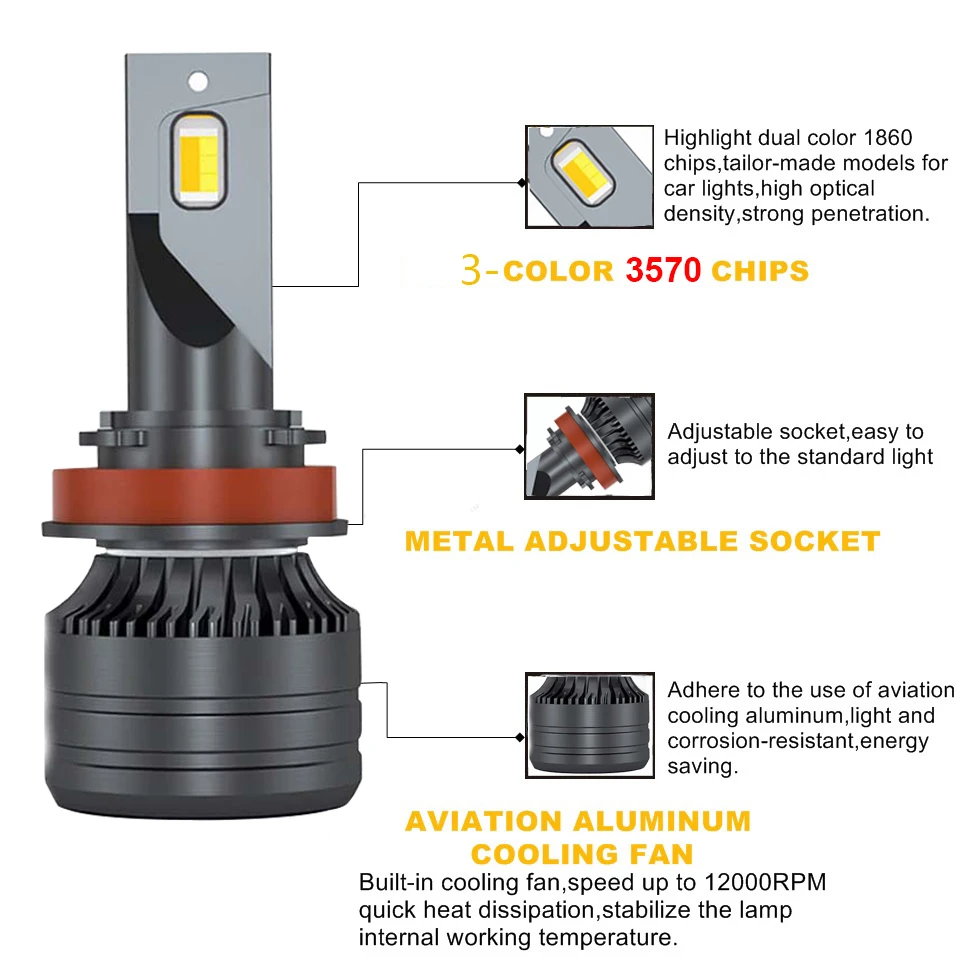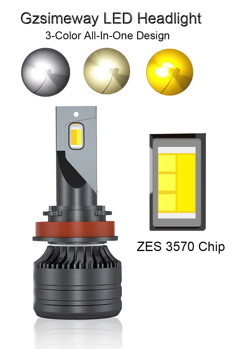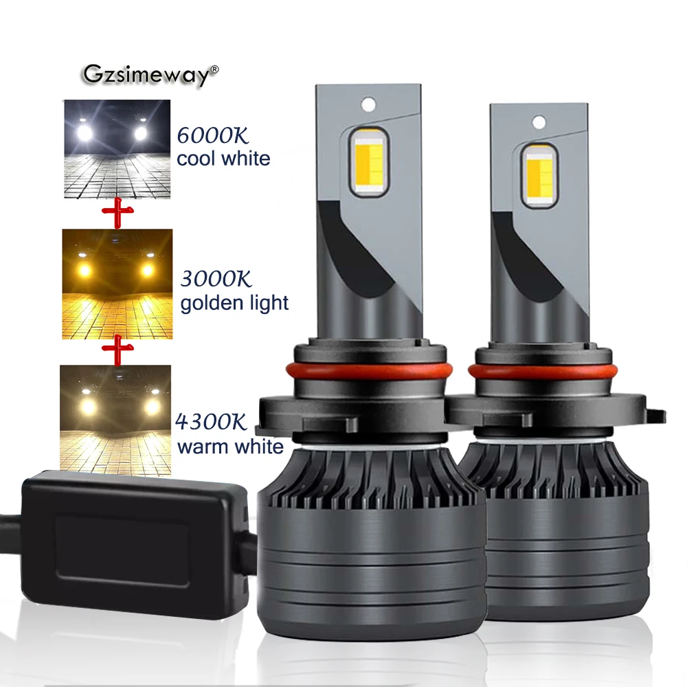 2 шт. Новый триколор авто светодиодный 9005 HB3 фары 20000LM 12 В 24 В Автомобильные фары 3 цвета H3 H4 H7 H8 H1 H11 HB4 9012 880 H27 9006 HB4 лампы