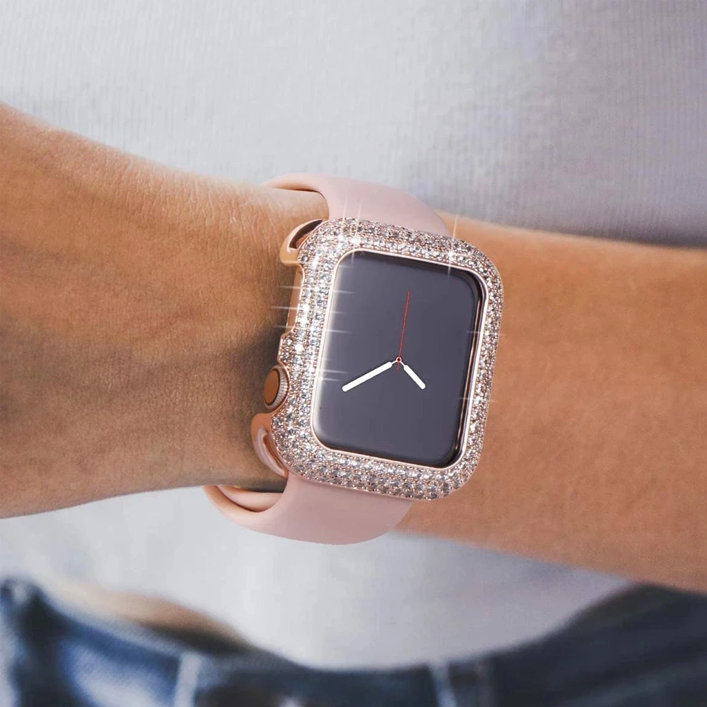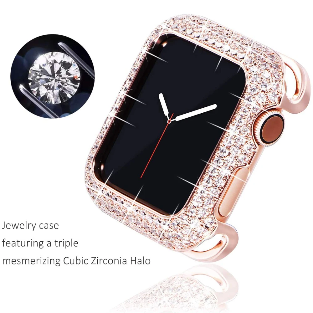 Блестящий чехол 44 мм для Apple Watch SE 6 5 4 3 40 мм, рамка, бронзовый металлический защитный чехол с кубическим цирконием и кристаллами для женщин