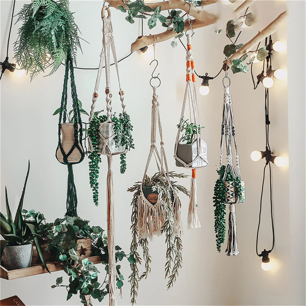 Макраме настенная вешалка для растений тканая Богемия макраме воздушная растительная вешалка держатель подвесная плантаторная корзина Настенное подвесное украшение для домашнего балкона